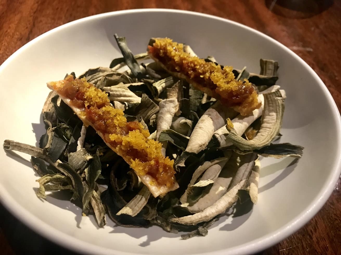 The food is best described as experimental. And as is the case with experiments, some work and some don’t. The first course was plantain with garlic and chicharrones (fried pork rinds) which was served in a mortar and pestle with instructions that we needed to crush the ingredients ourselves. A bit too gimmicky for me for a fine dining restaurant and even my friend who is a huge fan of garlic found the garlic overwhelming.
